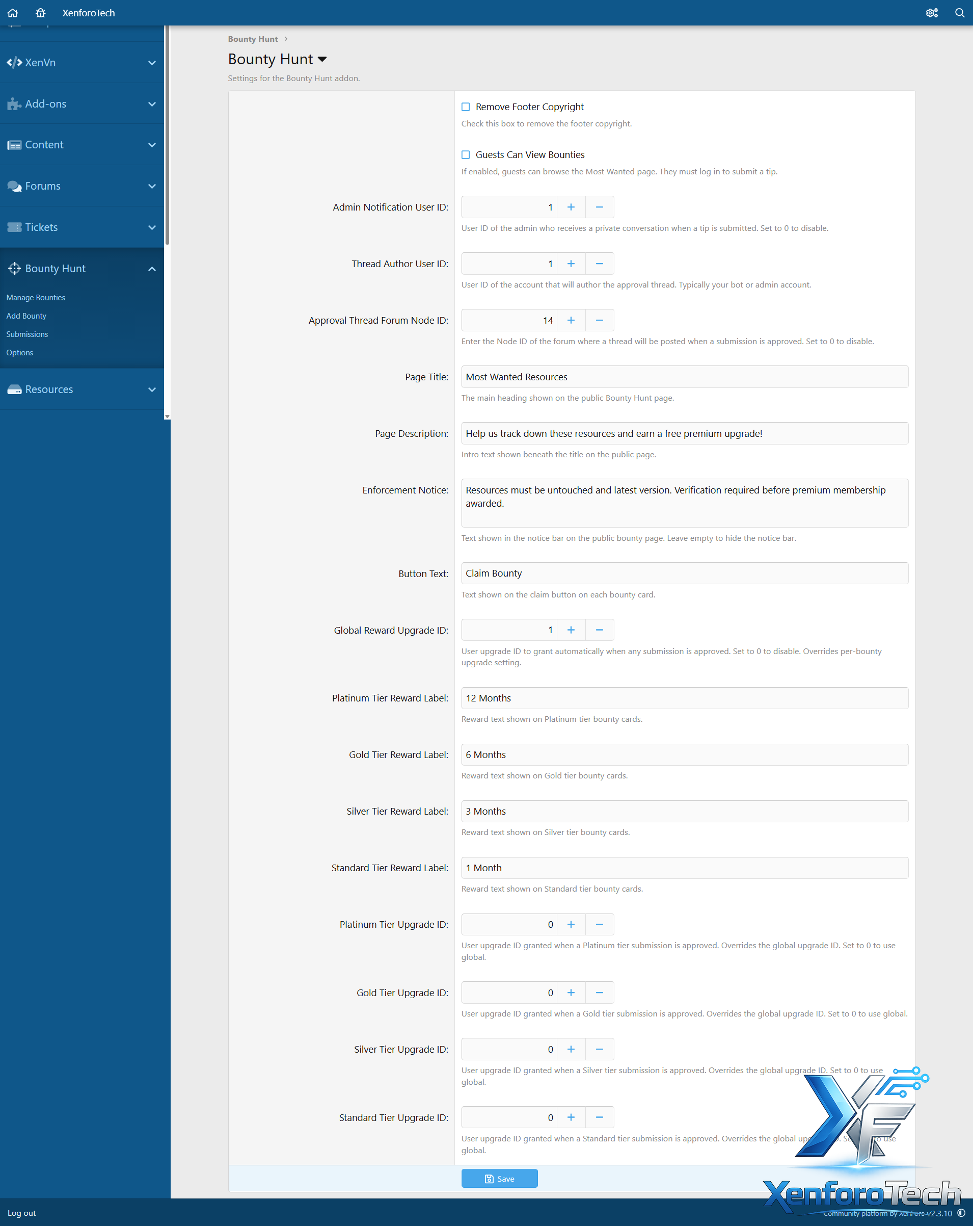 4. Configure the addon under ACP > Bounty Hunt > Options