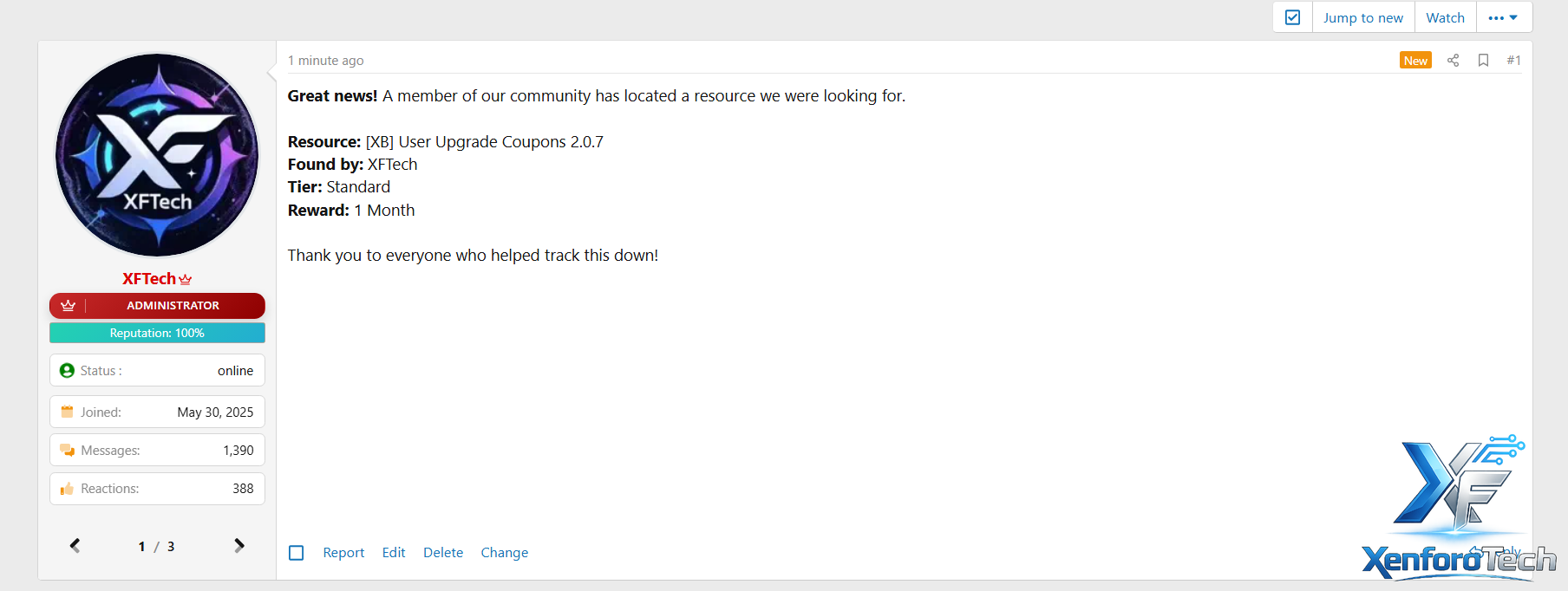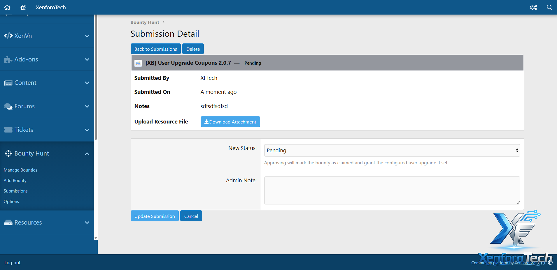 When a submission is approved, Bounty Hunt simply fires a User Upgrade against the submitting member's account. The duration of that reward — whether it's one month, six months, a year, or anything else — is determined entirely by how you have configured that upgrade inside XenForo's ACP. If your "Gold Member" upgrade is set to run for six months, approving a gold-tier bounty grants six months. If you later change it to three months in your upgrade settings, every future approval reflects that automatically.